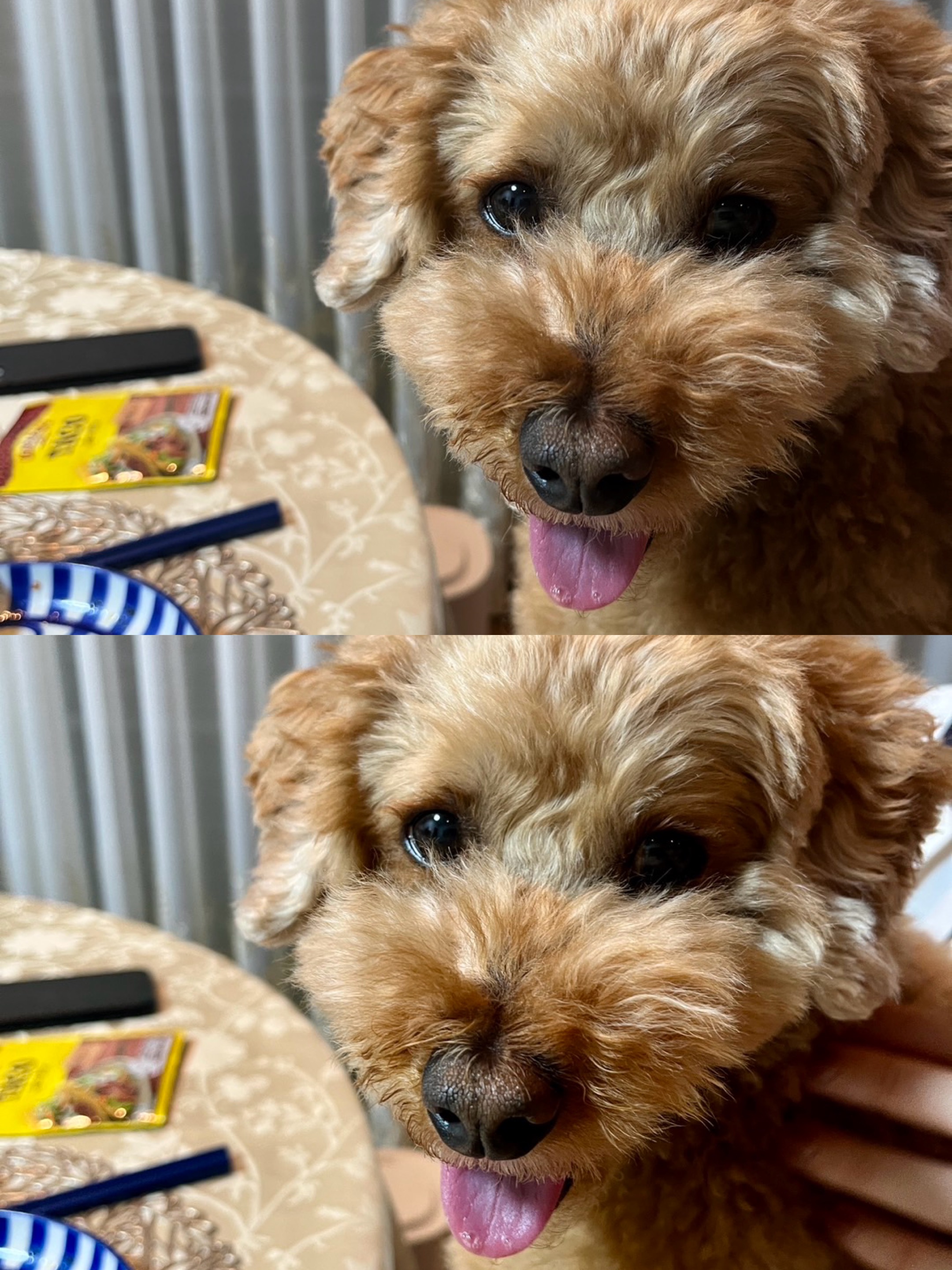 ぱろちゃんおはよー(^^)お皿とスプーンでなにかおやつ食べたのかなー笑笑あくびの写真パラパラ漫画みたい(^^)/